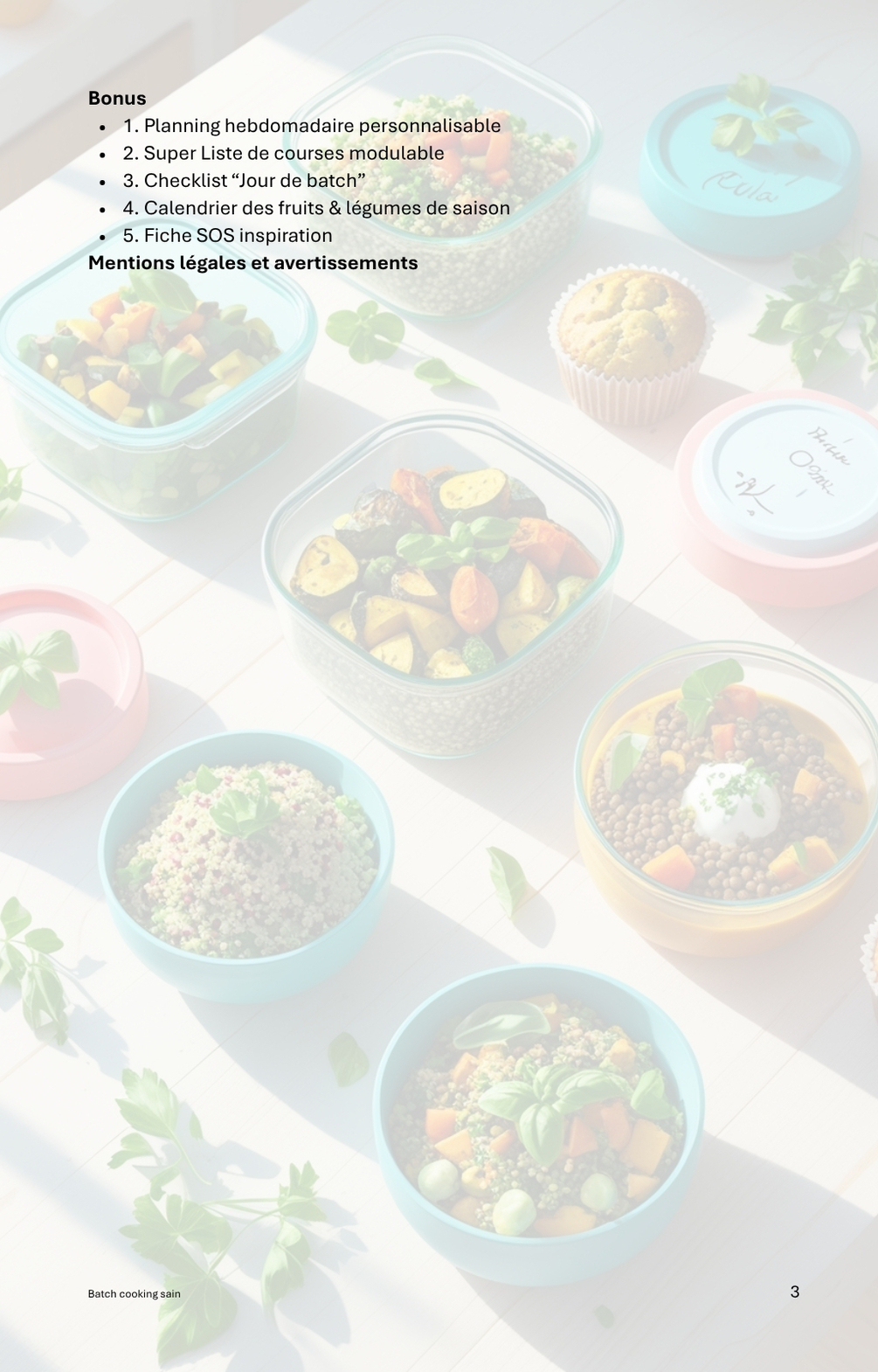 Votre semaine de repas prêts en 3 heures max. Guide pratique et bonus pour cuisiner sainement sans stress grâce au batch cooking.